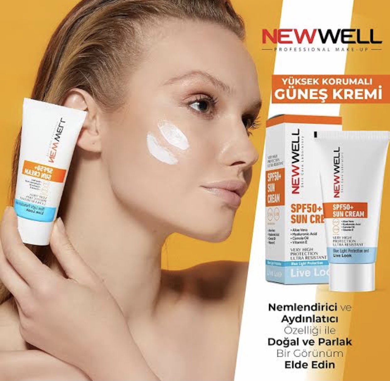 ضد آفتاب نیوول NEWWELL با spf 50 برای انواع پوست حجم 50 میل یک از بهترین ضدافتابهای بی رنگ ترکیه محصول شرکت نیوول ترکیه