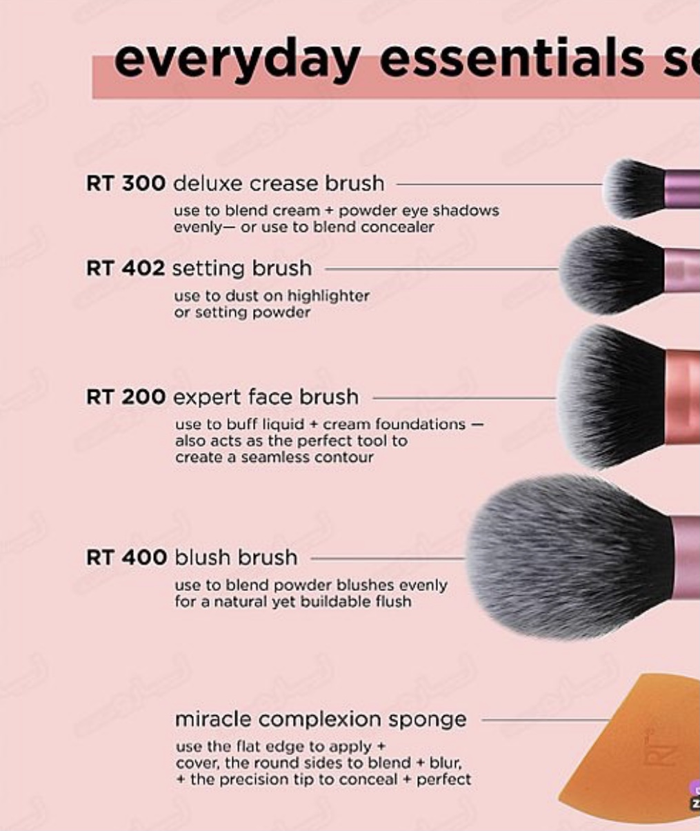 نوع: براش و پد آرایشی جنس: الیاف طبیعی مناسب برای: رژ گونه، کرم پودر، هایلایتر و براش سایه چشم ضد حساسیت: هست قابل شستشو: هست: 4براش ۲پد در بسته