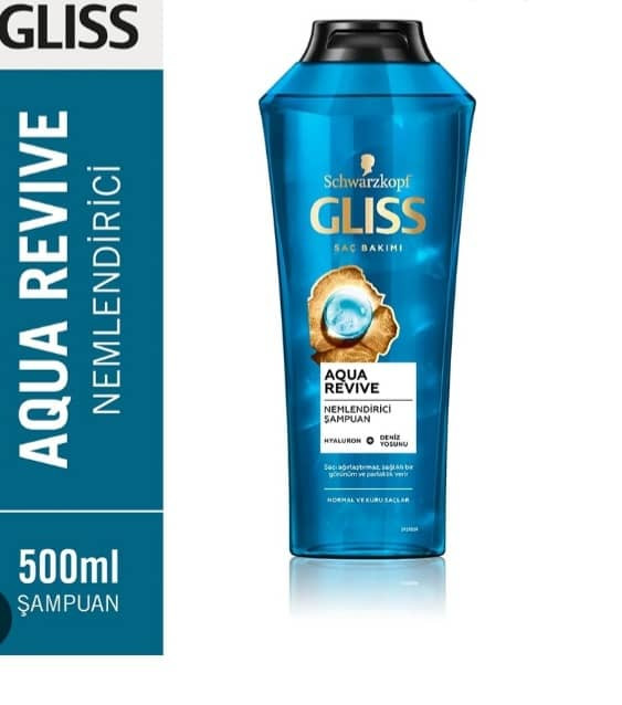 شامپو موی خشک گلیس GLISS مدل AQUA REVIVE همراه با کمپلکس HYALURON و جلبک دریایی مغذی موها را بدون سنگین کردن عمیقا رطوبت رسانی نموده و درخشندگی بیشتری به موها می بخشد